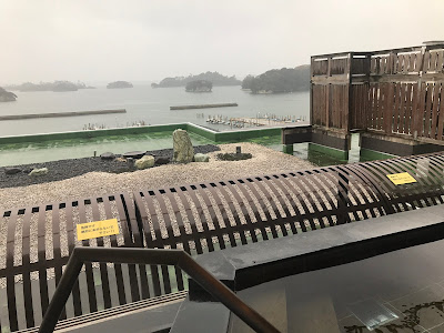 松島の海岸沿いに建つ海風土へ。松島も東北大震災の際三m半の津波に襲われたそうだが、中心街はだいぶ復旧しており焼きガキなど楽しんで宿へ。今回の旅行で一番高価な宿だけあり、屋上の露天からは松島が一望でき食事も凝っていた。